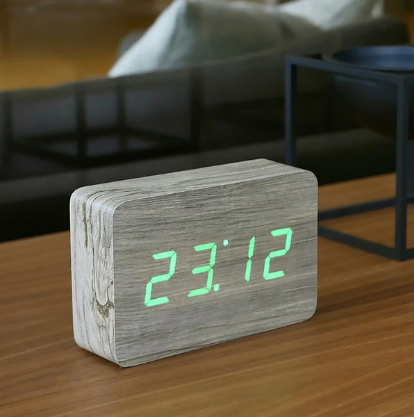 This Gingko brick alarm clock can tell you the time, date and temperature alternately in LED colour on a wood-effect block at the click of your fingers and automatically switches off when the room is quiet, lighting up again when the alarm goes off or as a response to clicked fingers or clapped hands. The numbers seem to float on the lovely wooden block, but that’s just half the magic of this brick with a conscience. We think it’s the perfect, unique and clever home accessory,especially if you don’t like a bright light shining in your bedroom at night. But if you need to check the time, you can just click your fingers or gently tap your bedside table and the time will appear, so you don’t have to struggle to find your smartphone in the darkness anymore. Small, but smart; Simple, but clever. Product Features: Displays time, date and temperature alternately Sound activated display or permanent display settings Alarm setting with clever snooze function 5/7 days alarm settings Automatic dimmer function (the clock will dim 2/3 automatically between 21:00 -7:00) 12/24 Hours or Celsius/Fahrenheit format can be selected Internal battery included to keep your custom settings in case of sudden power cut Power supply: 5V-500mA AC/DC plug adapter (included) Material: MDF wood with aluminium or wood effect veneer finish Product size: 150x45x100mm Product weight: 550g