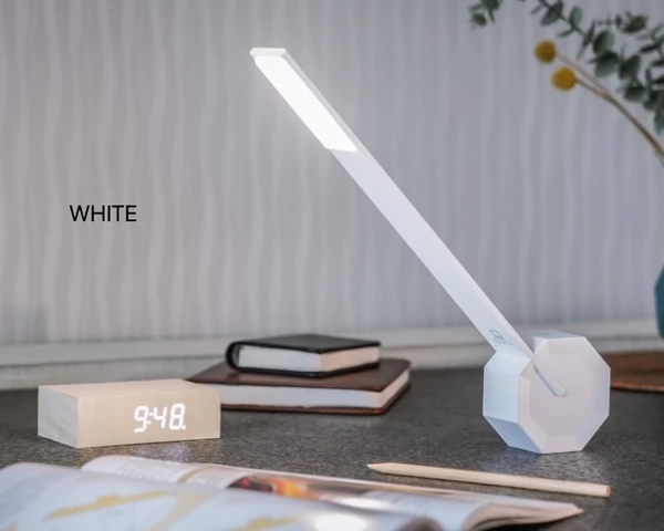 Minimalist, sleek and elegant the Octagon One desk lamp can be turned on with touch control to 4 levels of brightness. With its innovative octagonal shape it can be positioned in 3 orientations to give you the close up you need. Voted Gift of the Year in 2018 this is one of our top selling and desired gadgets. Available in walnut, maple, black, ash and white finishes. Made from aluminium with walnut, black, maple or white wood effect finish Dimensions (HWD): 38cm x 8.5cm x 4cm Weight: 745g Powered in-built 3.7V rechargeable battery with USB charging cable Battery life: 7 – 48 hours Charging time: 3 – 4 hours Maximum wattage: 4W Light source: 36 LED beads Handmade in the UK