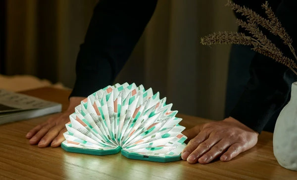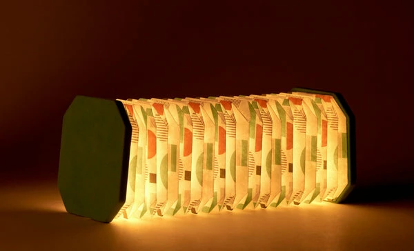 Inspired by the shape of an accordion, and with a choice of five sumptuous velvet colour options, these unusual lamps now also showcase a range of exclusive new patterns, one of which features the leaves of the gingko biloba tree that we are named after! This versatile lamp can be used in so many ways, from using the cleverly incorporated magnets to open it to a full 360 degrees, to hanging it Chinese-lantern style using the matching velvet magnetic lanyard for a beautiful party accessory. Choose from two light intensities which beautifully highlight the exquisite patterns through the waterproof and tearproof Tyvek paper. Once closed, the lamp is condensed down to a tactile and attractive hexagonal display item, small enough to pop in your suitcase for holidays or to take outdoors for balmy summer evenings. Designed in-house by Gingko in Warwick, UK.