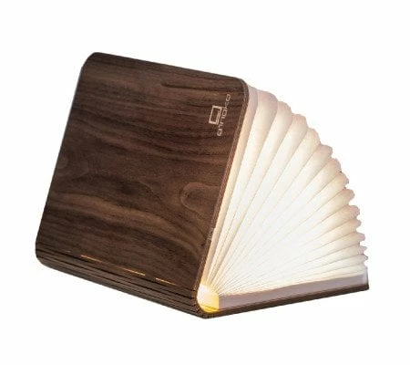 Led smart book light walnut. The gingko smart book light masquerades as a simple hardcover book when closed, but open it up and it transforms into a sculptural light. Inside the laser-cut wood cover hides a series of light pages containing high performing white leds. The beautiful, exquisite design opens to full 360 degrees with cleverly concealed magnets and the lovely soft touch papers are tear proof and water resistance that lighten up by long-lasting led lights a minimum 35000 hours use. The book light is totally wire free as it’s powered by in-built rechargeable battery, so can place it at anywhere , sitting room, lounge, bedroom or even in the kitchen. The battery will take approximately 2-3 hours to charge and it will last about 10-12 hours on constant use on one charge or it can be plugged in permanently as well. A micro-usb charger is included. Dimensions: w17cm h21.5cm d2.5cm when closed, w34cm h21.5cm d2.5cm when opened. Material: walnut wood and water resistant tyvek paper . Led display colour: soft warm white. Feature summary. Led life-span: about 50000hrs. Colour temperature: 2700k for warm light walnut version. Output: 400 lumen. Power supply: in built rechargeable lithium polymer. Can be opened up to 360 degrees. Magnetic covers so it can be attached to any metal object on the wall etc.
