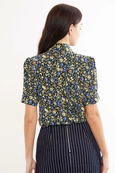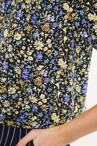 This relaxed fit, short sleeve shirt features gold rimmed buttons and shirred detailing to front yoke. Crafted in a premium polyester ditsy floral pair with out Joele black slim trouser . 100% Polyester Turn inside out. Machine wash in warm water with similar colours. Do not bleach.Do not tumble dry, Simply hang on a hanger to dry .Cool iron. Do not dry clean. Model is 5ft 7″/170cm tall and wears size 8.