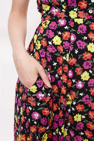 One of our best-loved vintage tea dress shapes, the Cathleen summer bloom dress transcends seasons and is sure to flatter all year round. Some of our favourite features include cap sleeves, a fitted bodice, a back tie waist for a customisable fit, and of course, ever-essential side seam pockets. Product Information: The fabric material is 100% Viscose Just To Let You Know: When washing, turn inside out and place on hand wash cycle with similar colours. Warm iron. The piece cannot be bleached, dry cleaned, or popped in the tumble dryer. Model is 5ft 8″/173cm tall and wears size 8.