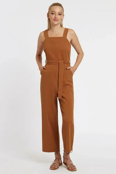 Louche Dawson Cropped Jumpsuit Tan Brown Cotton
