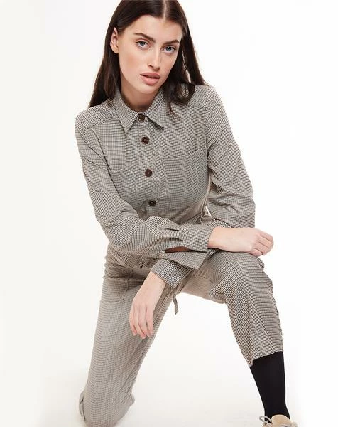 The Jamel gentleman check is everything we need from a jumpsuit and more! Not only is the piece effortlessly chic, but it also oozes comfortability. The utility-style shape comes equipped with front and back pockets to store your essentials in style. Product Information: Utility style jumpsuit Front and back patch pockets – Drawstring waist Long sleeves Material: 80% POLYESTER 18% VISCOSE 2% ELASTANE Just To Let You Know: Turn inside out Machine wash with similar colours Do not bleach, dry clean, or tumble dry Warm iron on reverse Model is 5ft 5″ and wears a size 8.
