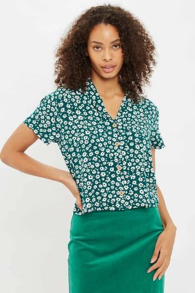 Louche Louche Marika Flower Sketch Print Short Sleeve Shirt Green