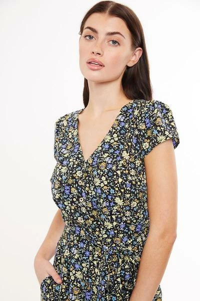 Louche Marleen Fallen Flower Print Short Sleeve Cropped Jumpsuit