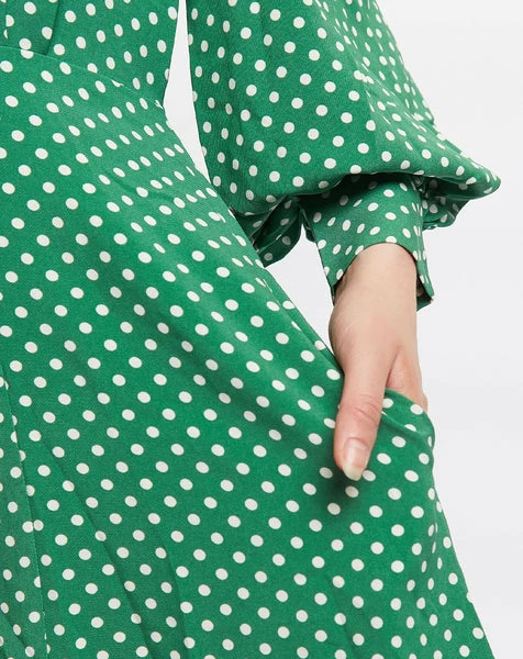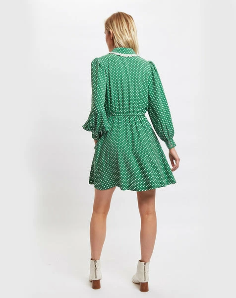 Louche Nancy Polka Dot Print Long Sleeve Mini Dress In Green
