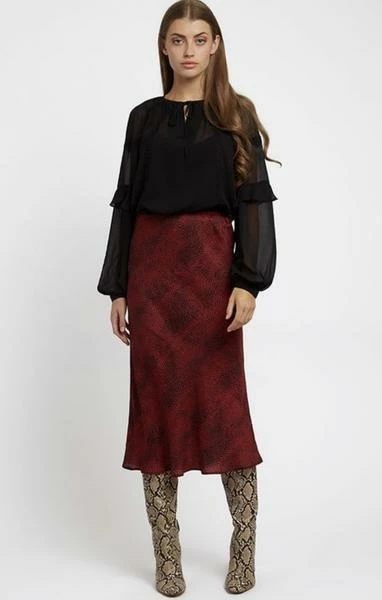 A striking midi skirt in a matt satin print is cut on the bias to give a flattering fit., This skirt works well with your favourite black tee or chunky sweater . We’ve teamed it with the Alba top for a laid back 70’s vibe