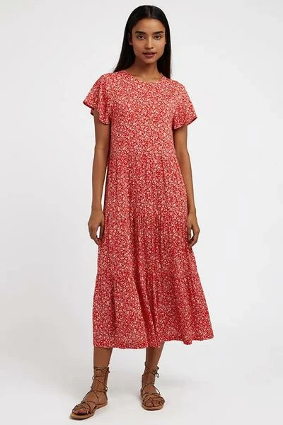 Louche Theoden Shrubbery Red Ditsy Floral Print Tiered Maxi Dress