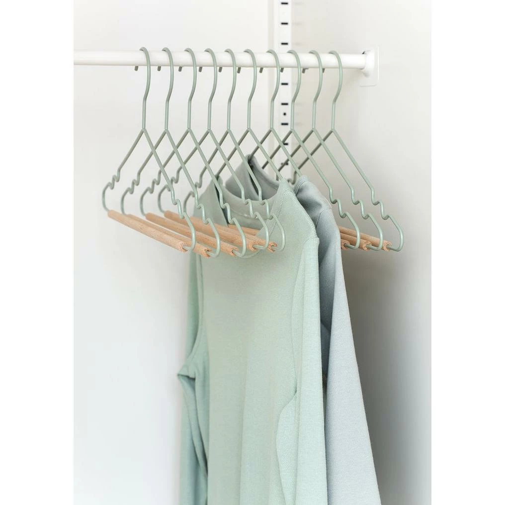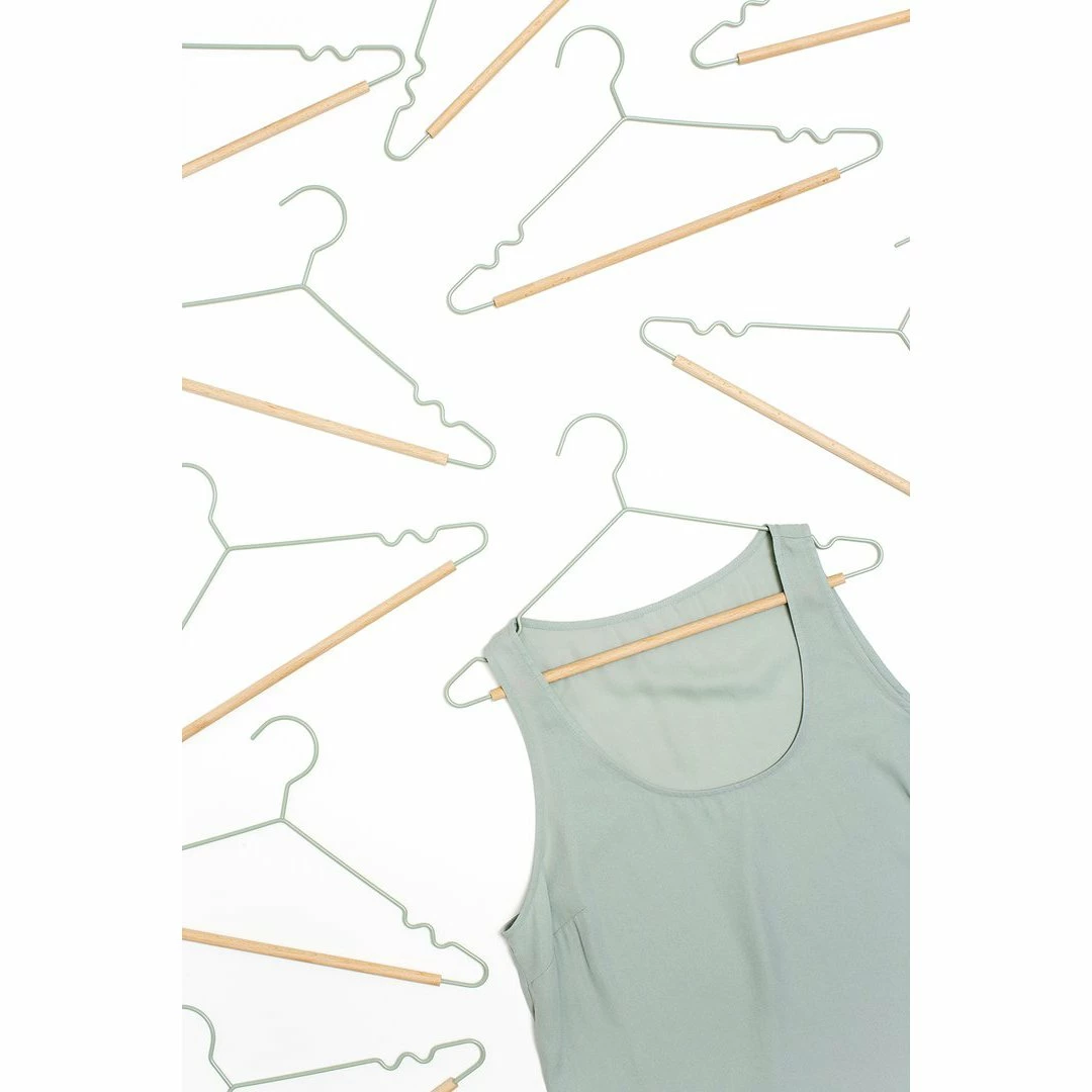 The hangers of your wardrobe dreams! Our fancy hangers have a smooth matte powder-coated finish, a timber detail + a mustard signature ‘squiggle’ on the sides for an added cool factor. These hangers will fit perfectly in your Twinny or Skinny. Pack of 5 Measurements: Height 20cm, Width 38.5cm