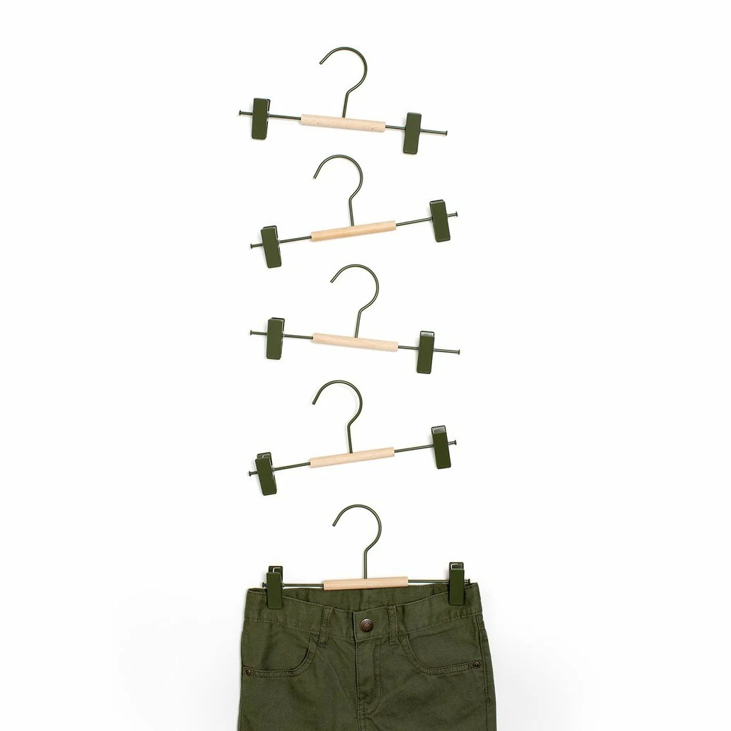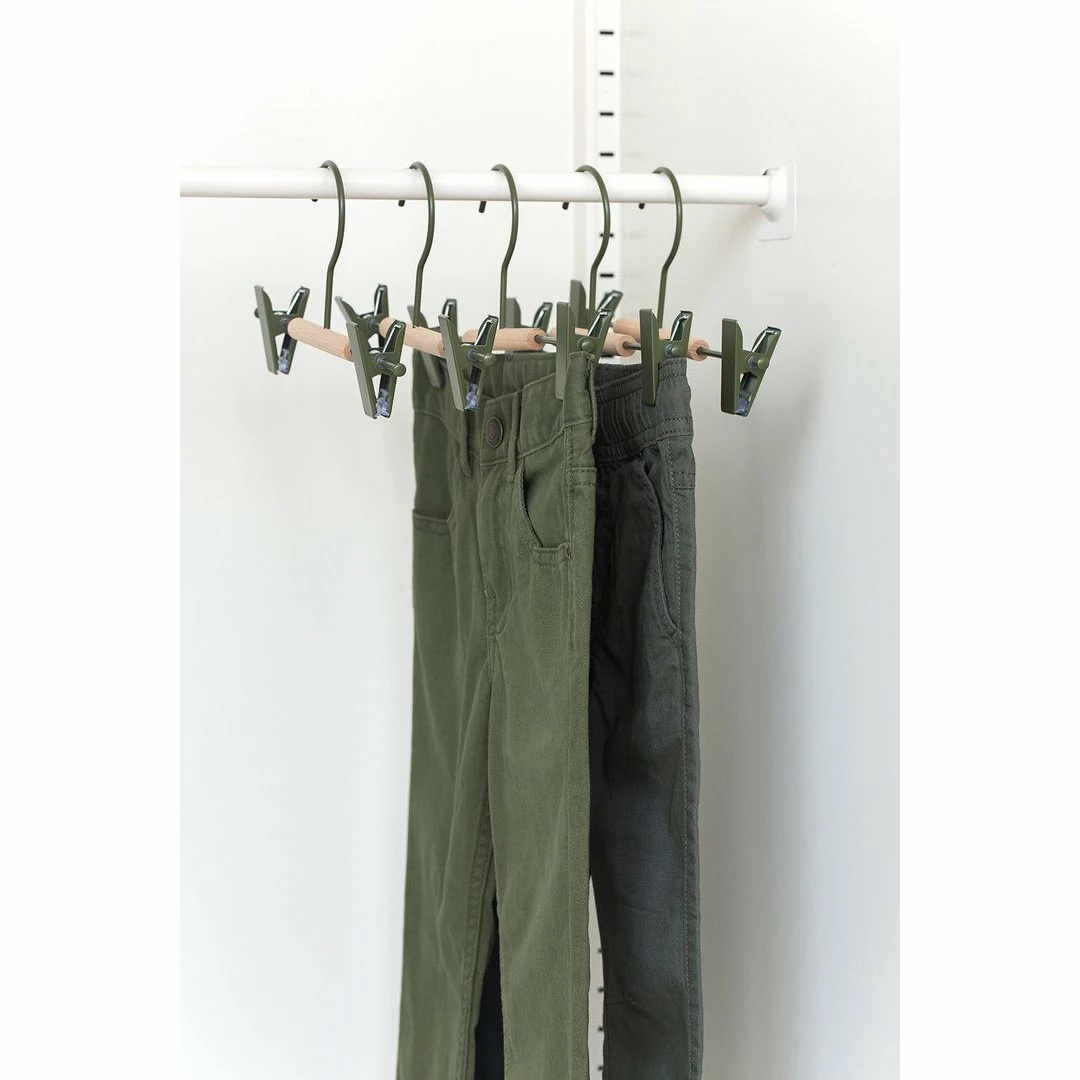 Say hello to the cutest hangers for your little people! Our fancy clip hangers have a smooth matte powder-coated finish, a timber detail + two clippy clips ready to hold your clothes just right. These hangers will fit perfectly in your Twinny or Skinny. Pack of 5 Measurements: Height 12cm, Width 25cm