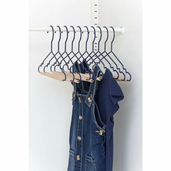 Mustard Made: Kids Top Hangers (Various Colours). Say hello to the cutest hangers for your little people! Our fancy hangers have a smooth matte powder-coated finish, a timber detail + a mustard signature ‘squiggle’ on the sides for added cool factor.These hangers will fit perfectly in your Twinny or Skinny.Available in Berry, Blush, Mustard, Navy, Ocean, Olive, Sage, Slate, Lilac and White.Pack of 10Measurements +Height 17.5cmWidth 30.5cm